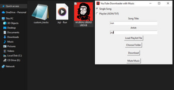 A simple tool built so it lets you download single songs or full playlists (JSON/TXT) straight from YouTube, while background music plays to keep the experience lively.